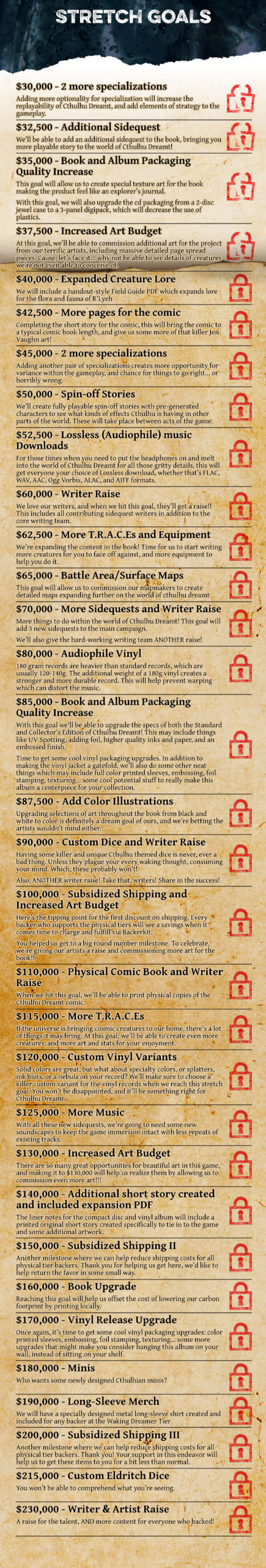 Cthulhu Dreamt is a multimedia storytelling experience, taking shape as a tabletop role-playing game, a soundtrack, a novel, and more. You can immerse yourself in the story through music, prose, and connected media—and then you can live the story!This game is built on an original D12 system designed by Adam Baffoni and written by Jaron R. M. Johnson, one of the lead designers of Monsters of Murka. It includes a fully playable campaign and the game rules in one book, including 10 playable specializations and dozens of fully realized, horrifyingly original creatures. This game expands on the mythos of Cthulhu while bringing it into a unsettling sci-fi future.This game is accompanied by a completely original and stream-safe soundtrack written by Fable Factory founder Reed Reimer, and performed by Cthulhu Dreamt. The soundtrack was written to be an audio story experience, which can be enjoyed with the game or stand-alone.