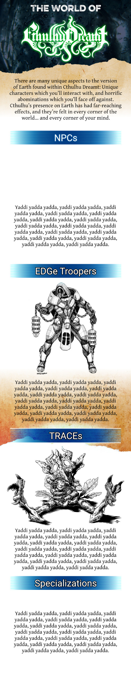 You've awoken from a dead sleep, only to find that the ancient being discovered off the Pacific Coast 5 years ago seems to have finally awoken from his own dream, and now intends to make your reality a waking nightmare.Coming soon to Kickstarter, Cthulhu Dreamt is a multimedia sci-fi tabletop RPG that explores a near-future Earth, where Cthulhu has awakened and begun exerting his otherworldly influence on the planet. This project offers a fresh take on Cthulhu by imagining the horror occurring in our world with technology that may or may not exist in the year 2034.You and your friends play a group of people who awaken from a shared dream, and are called upon by a secret government agency to rescue one of their top scientists. On your journey across the globe, you will fend off the rising tide of cosmic effects and otherworldly organisms from consuming the planet… and humanity along with it.